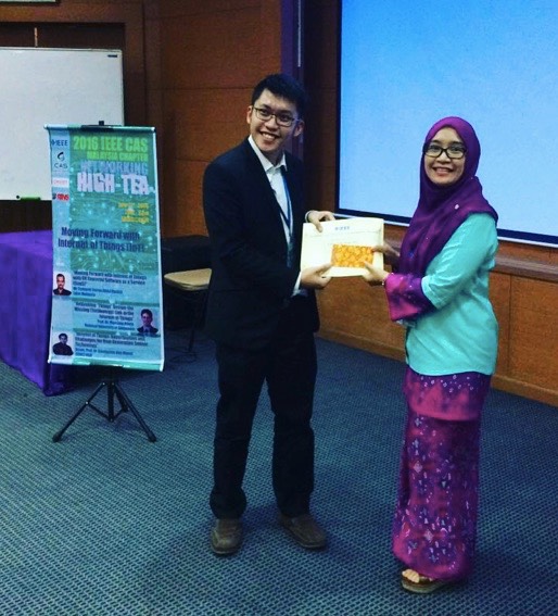 (Right photo) Chair of IEEE CAS M, Dr. Nurul Amziah Md Yunus presented an honorarium and a certificate to the IEEE CAS (M) Doctoral Dissertation Award Winner Dr. Kelvin Yong Sheng Chek from Swinburne University of Technology Sarawak Campus, Malaysi