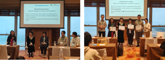 Figure 3. Panel discussion featuring Prof. Hua Fan alongside keynote speakers (left) and speakers gathering after the session (right)