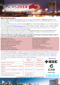 The theme of ISCAS 2014 is nano/bio circuits and systems applied to enhancing living and lifestyles, and, in line with the Society’s Mission and Vision (http://ieee-cas.org), especially to the multidisciplinary grand challenges in healthcare and well-being, environment and climate change (e.g. see http://engineeringchallenges.org). ISCAS is the world's premier networking forum in the fields of theory, design and implementation of circuits and systems. The Society’s goal is to build it also as the premier forum in pioneering circuits and systems contributions to humanity’s grand challenges. ISCAS 2014 will include oral and poster sessions, tutorials in emerging topics and special sessions complementing the regular program. It will also include invited industry innovation sessions. ISCAS 2014 Keynotes will be delivered by distinguished speakers focusing on grand challenges relevant to the symposium theme.