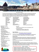 Only electronic submissions will be accepted. Corresponding authors of accepted papers will be requested to submit a 4-page final paper for the symposium proceedings. NOLTA2014 welcomes proposals for special sessions. Proposals will be evaluated based on the timeliness and the scientific quality of the topic. Notification of acceptance will be sent to the organizers by March 1, 2014. Please submit proposals via email by February 15, 2014 to: NOLTA’14 Special Session Proposal E-mail: nolta14ss@keiei.shikoku-u.ac.jp